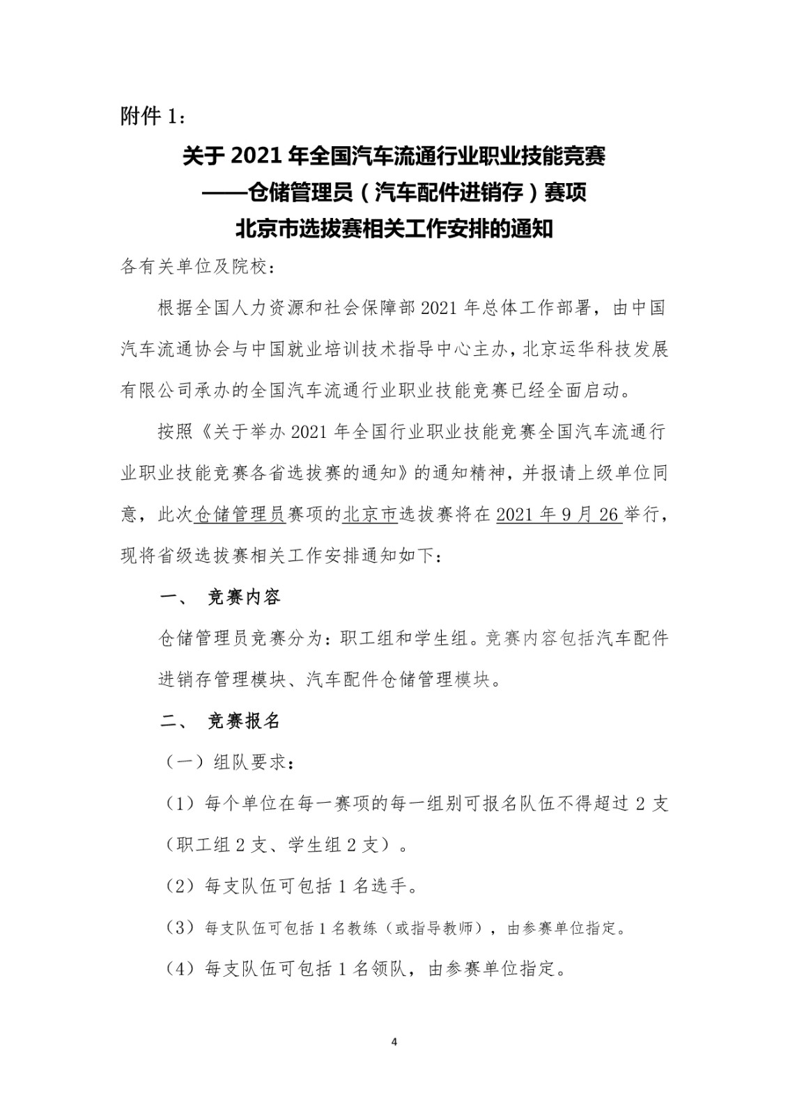 關(guān)于2021年全國汽車流通行業(yè)職業(yè)技能競賽 倉儲管理員(汽車配件進(jìn)銷存)賽項 北京市選拔賽的通知