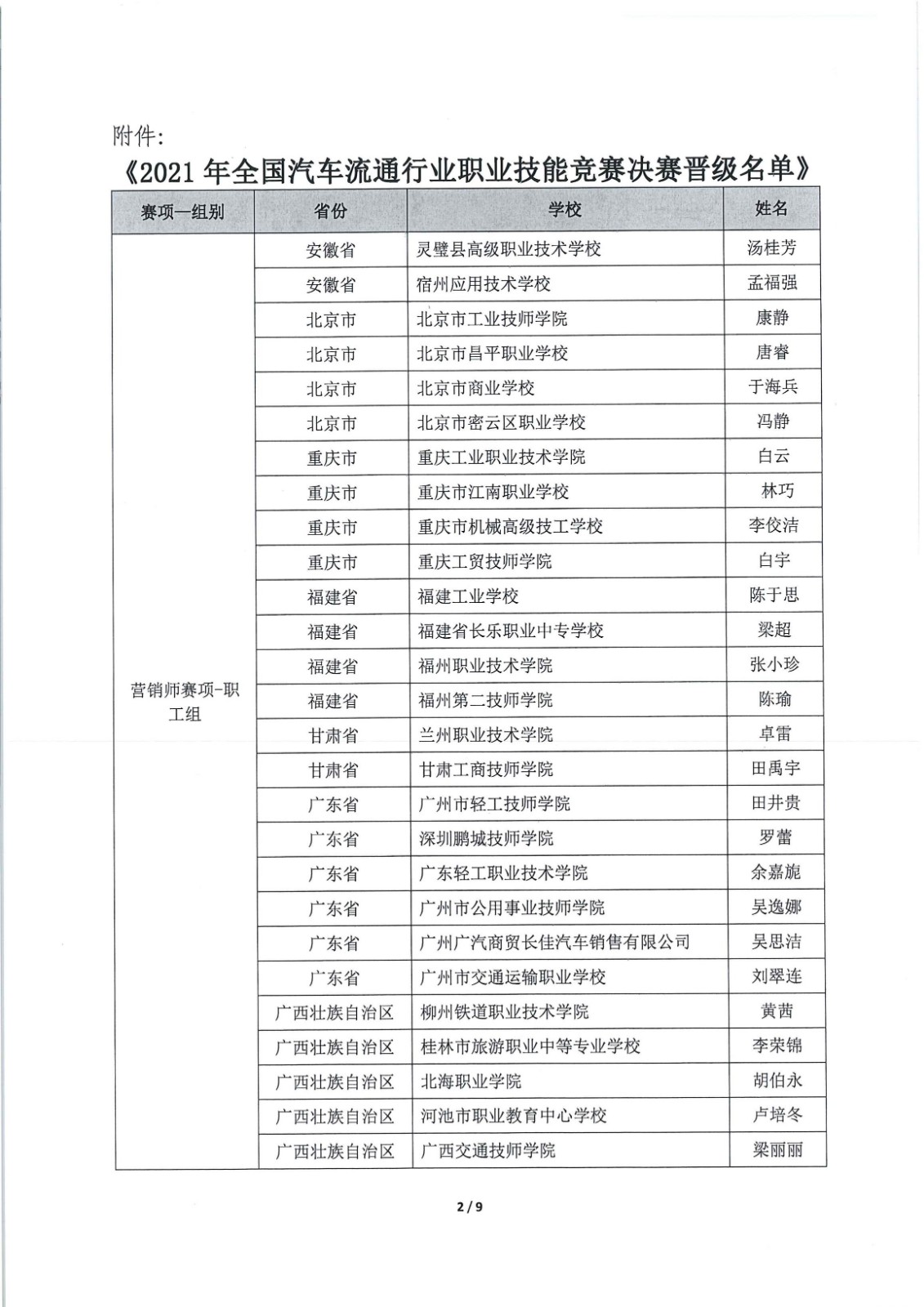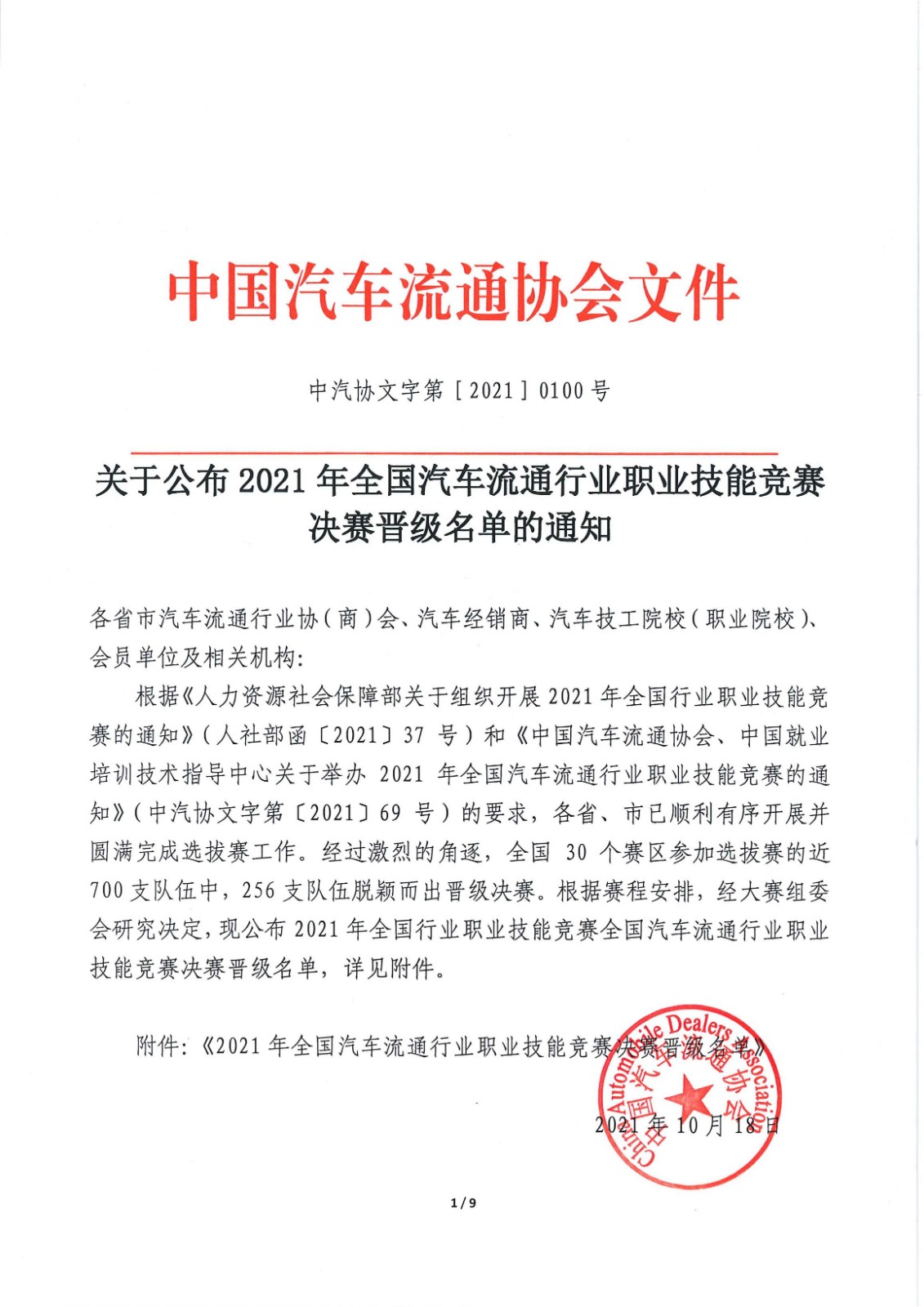 關(guān)于公布2021年全國汽車流通行業(yè)職業(yè)技能競賽 決賽晉級(jí)名單的通知