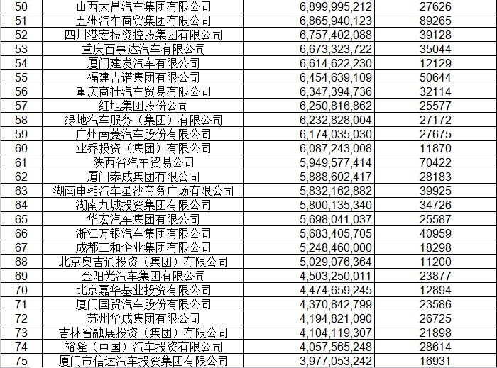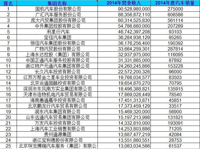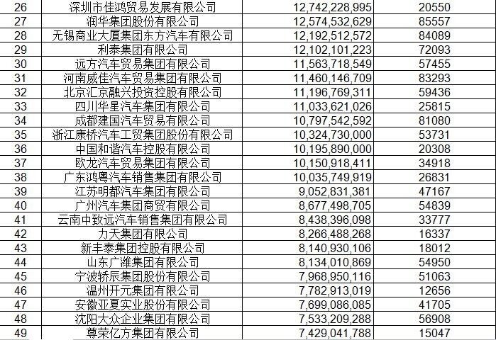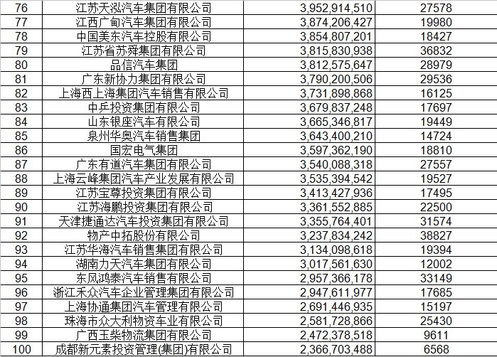 經(jīng)銷商集團(tuán)百強(qiáng)排行表