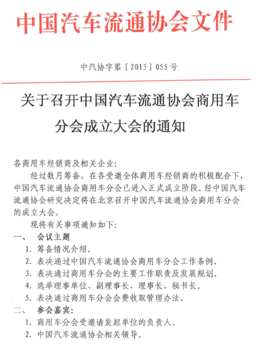 關(guān)于召開 中國汽車流通協(xié)會 商用車分會成立大會的通知