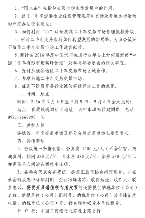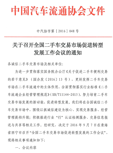 召開全國二手車交易市場 發(fā)展工作會議的通知