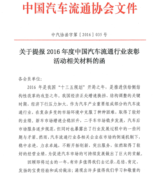 關(guān)于提報(bào)2016年度中國(guó)汽車流通行業(yè)表彰活動(dòng)相關(guān)材料的函