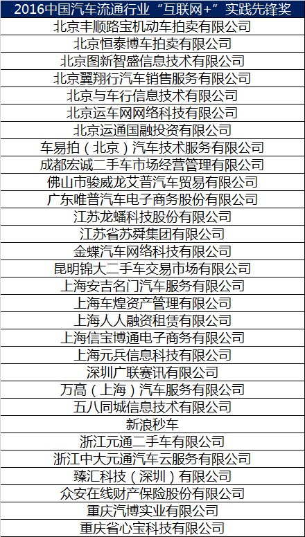 2016中國汽車流通行業(yè)“互聯(lián)網(wǎng)+”實(shí)踐先鋒獎(jiǎng)獲獎(jiǎng)名單