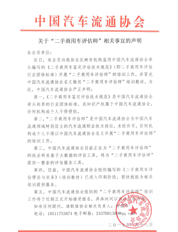 關(guān)于“二手商用車(chē)評(píng)估師”相關(guān)事宜的聲明