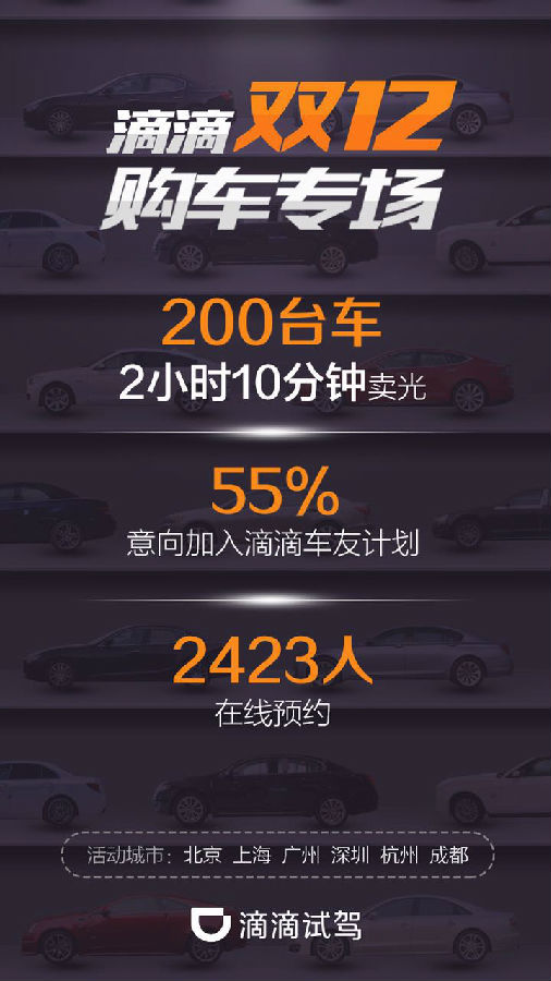 滴滴試駕雙12試水賣車 200輛2小時(shí)售罄