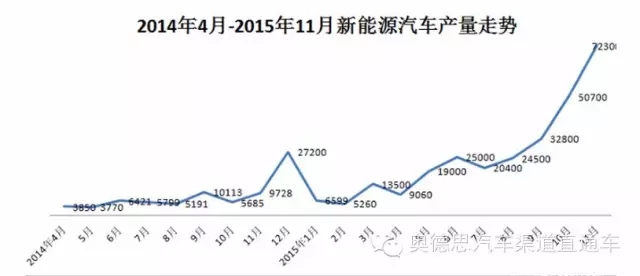根據(jù)國務(wù)院產(chǎn)業(yè)發(fā)展規(guī)劃,到2020年,純電動汽車和插電式混合動力汽車?yán)塾嫯a(chǎn)銷量超過500萬輛。工信部最新發(fā)布的產(chǎn)量數(shù)據(jù)也顯現(xiàn)了強勁的增長勢頭:2015年11月,新能源汽車產(chǎn)量達(dá)72300輛,同比增長超6倍。其中,純電動乘用車生產(chǎn)3萬輛,同比增長7倍,插電式混合動力乘用車生產(chǎn)7509輛,同比增長2倍。