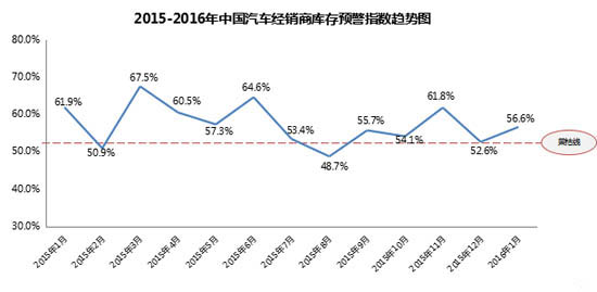 在剛剛過去的1月份,庫(kù)存預(yù)警指數(shù)為56.6%,比上月上升了4.0個(gè)百分點(diǎn)。盡管仍處于警戒線以上,但由于1月份經(jīng)銷商銷售任務(wù)較為合理,庫(kù)存消化情況較好。