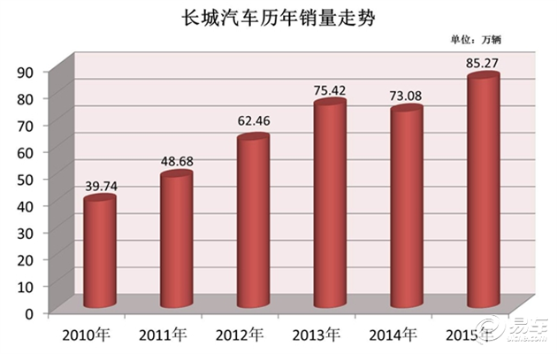 不斷走高,長(zhǎng)城汽車銷量五年翻一番
