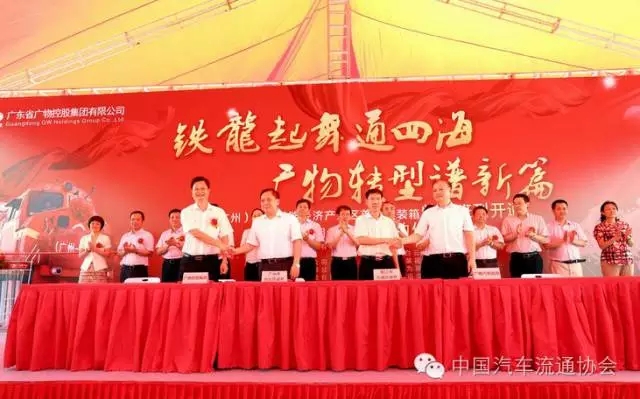 2016年7月20日,中國(guó)廣州—7月19日上午,廣東(廣州)國(guó)際鐵路經(jīng)濟(jì)產(chǎn)業(yè)區(qū)首列集裝箱特需班列開(kāi)通暨廣物控股集團(tuán)合作項(xiàng)目簽約儀式在廣物汽貿(mào)母集團(tuán)廣物控股白云倉(cāng)成功舉辦。此次活動(dòng)是廣東省積極響應(yīng)黨和國(guó)家“一帶一路”發(fā)展戰(zhàn)略號(hào)召,同時(shí)也是廣物控股、廣物汽貿(mào)創(chuàng)新改革的重要標(biāo)志。省政府及省發(fā)展改革委、省經(jīng)濟(jì)和信息化委、省商務(wù)廳、省國(guó)資委、省工商局,廣州市及廣州市白云區(qū)、陽(yáng)江市江城區(qū)政府有關(guān)領(lǐng)導(dǎo),廣鐵集團(tuán)、廣東華為現(xiàn)代物流有限公司、廣州大順發(fā)國(guó)際物流有限公司、廣東粵運(yùn)朗日股份有限公司、佛山市路之友機(jī)械制造有限公司等合作單位相關(guān)領(lǐng)導(dǎo)和各界嘉賓共150多人出席了儀式。