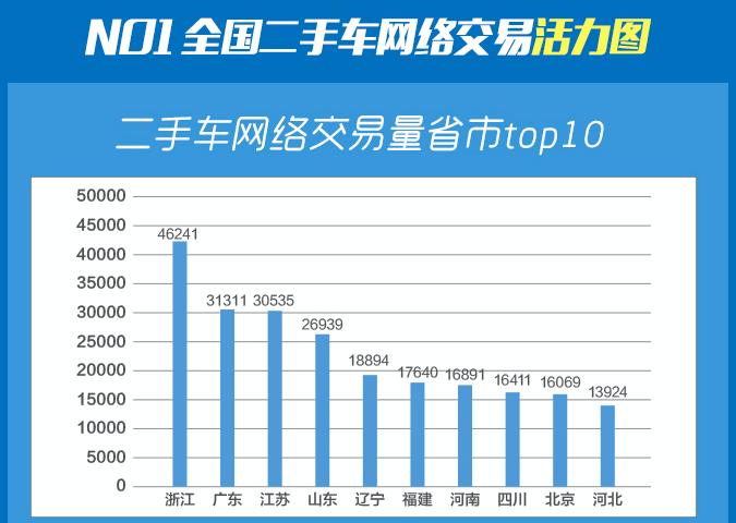 無論是全國二手車交易量還是網(wǎng)絡發(fā)布交易量從7月開始,都連續(xù)三個月成下降趨勢。與8月相比,二手車網(wǎng)絡交易量top10省份沒有發(fā)生變化,排名有微調(diào),整體變化不大,但是各省份交易量相比8月下降15%左右。