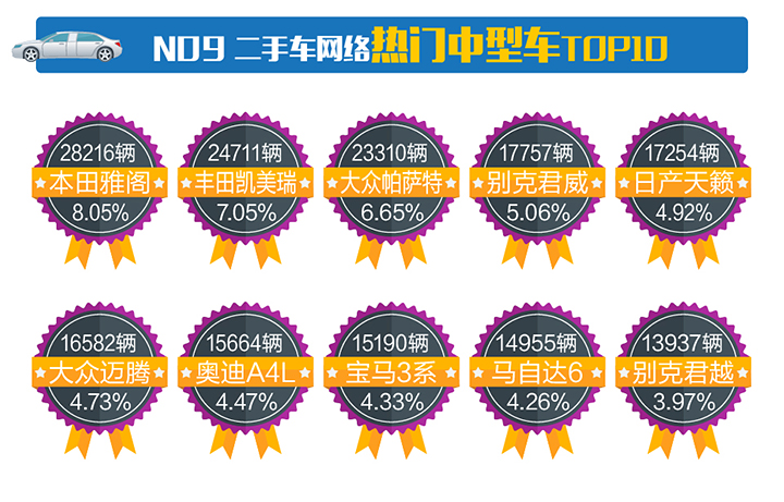 九、2017年3月二手車(chē)網(wǎng)絡(luò)熱門(mén)中型車(chē)TOP10