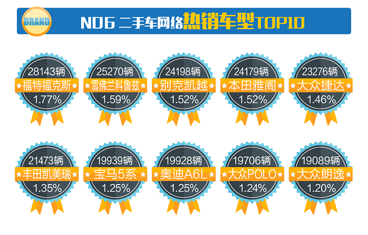 2017年9月二手車網(wǎng)絡(luò)熱門緊湊型車TOP10依次是:福特福克斯、雪佛蘭科魯茲、別克凱越、大眾捷達(dá)、大眾朗逸、大眾寶來、大眾速騰、豐田卡羅拉、別克英朗、日產(chǎn)軒逸。熱門緊湊型車上榜名單與8月一致,排名也幾乎沒變。其中大眾家族攜帶4款車型進(jìn)入榜單,占據(jù)40%。別克2款,雪佛蘭1款,福特1款,豐田1款、日產(chǎn)1款。