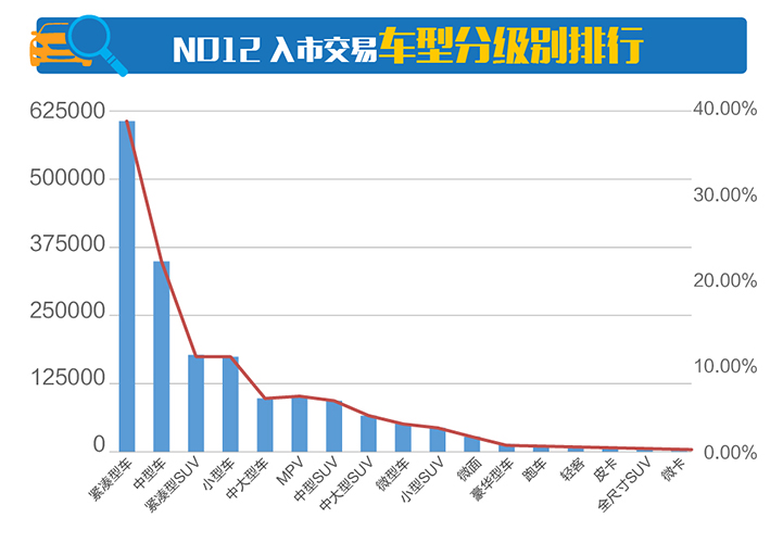 從公平價(jià)歷來大數(shù)據(jù)看,車型分級(jí)別車源排行無任何變化,本月入市交易車型以緊湊型車、中型車、緊湊型SUV、小型車為主,占比71.32%,環(huán)比上升0.19%。值得注意的是本月緊湊型SUV由上月第四名上升至第三名,可見SUV受大眾認(rèn)可度越來越高了。