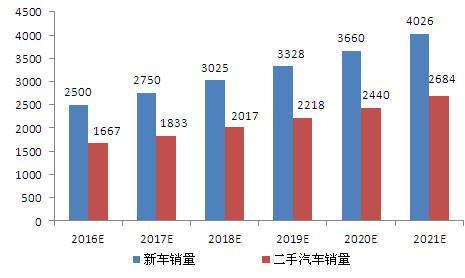 圖表3:2016-2021年二手汽車銷量預(yù)測(單位:萬輛)