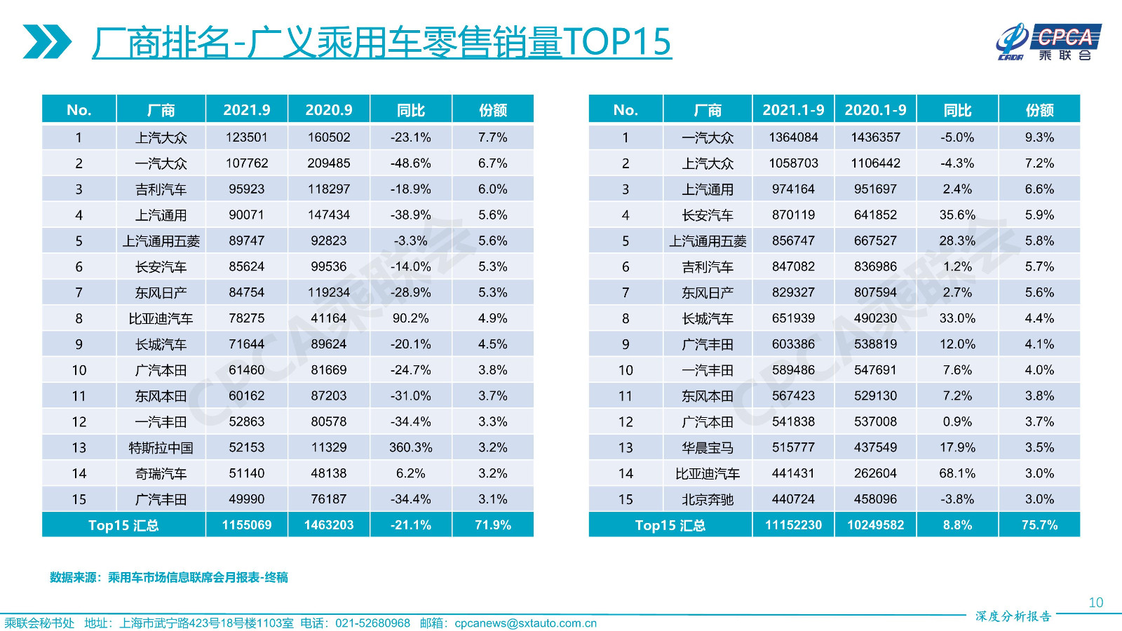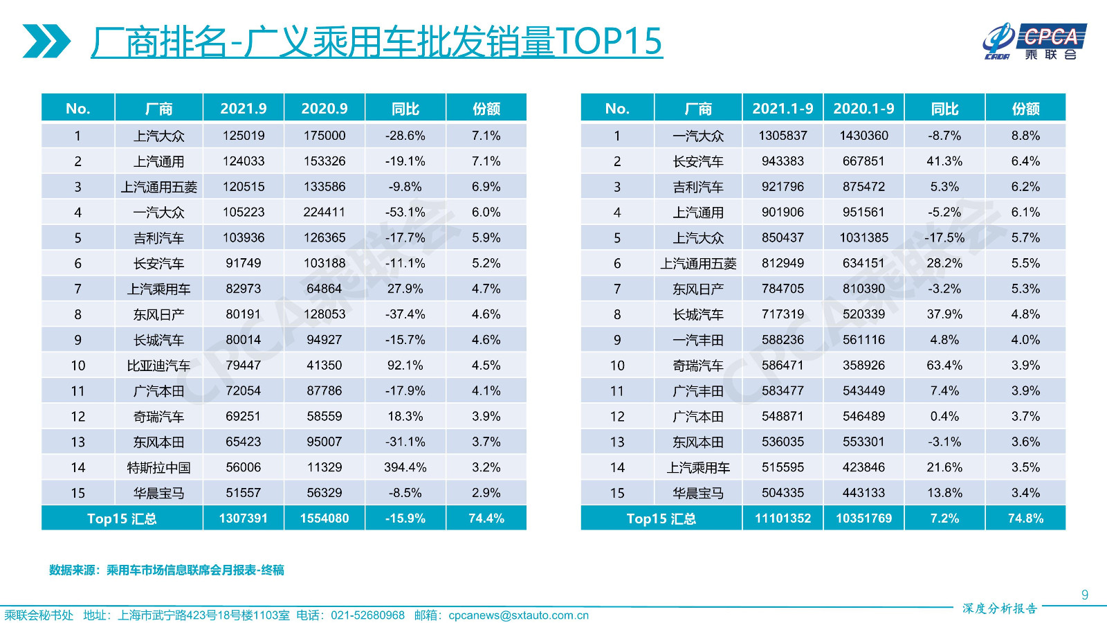 2021年9月份全國(guó)乘用車市場(chǎng)深度分析報(bào)告