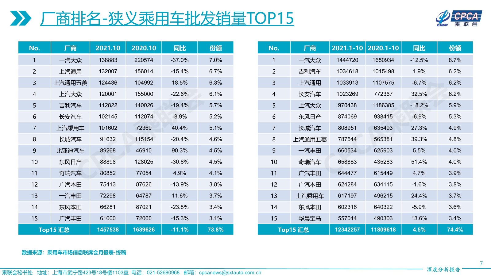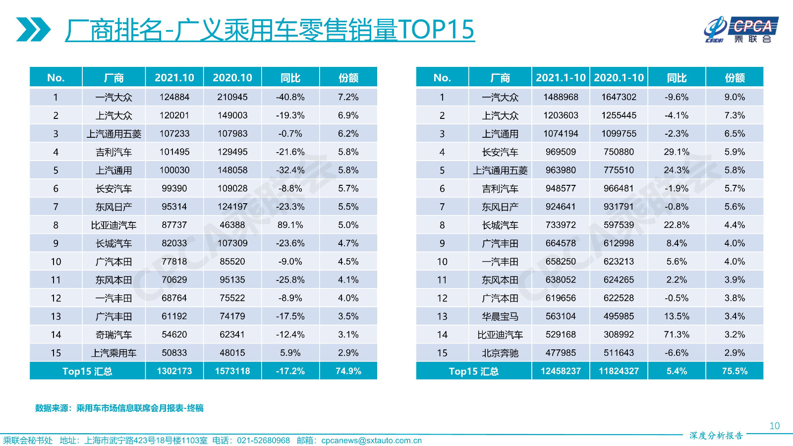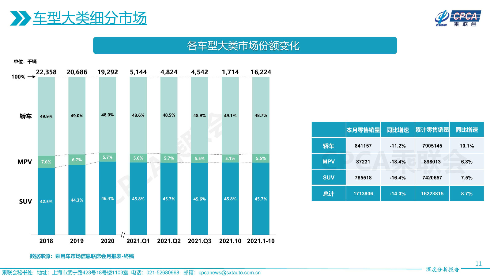 2021年10月份全國乘用車市場深度分析報(bào)告