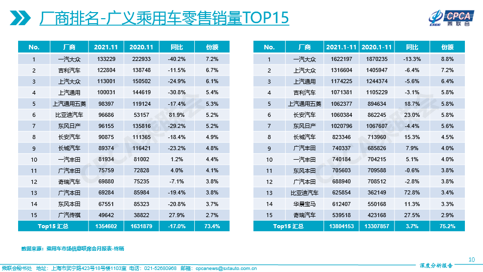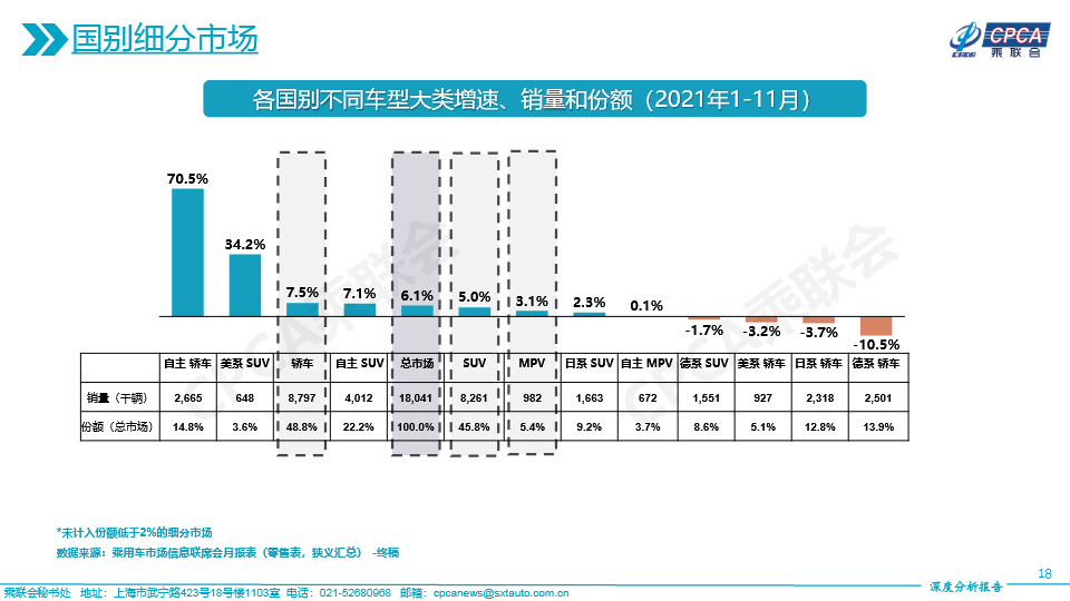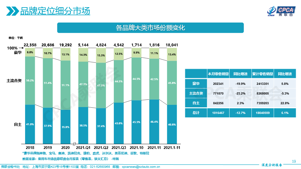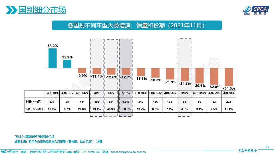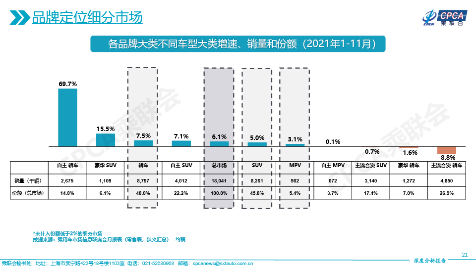 (含各品牌大類市場份額變化及各品牌大類下不同車型大類增速、銷量和份額——2021年11月及累計(jì))