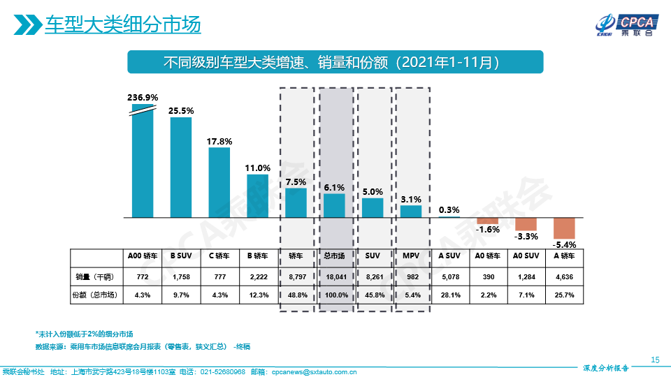 (含各車型大類市場份額變化及不同級別車型大類增速、銷量和份額——2021年11月及累計(jì))