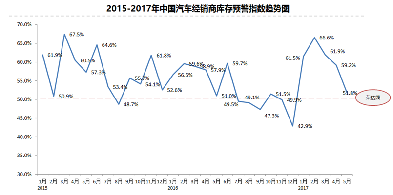 2017年5月份中國汽車經銷商庫存預警指數為51.8%