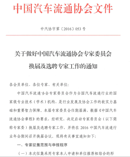 關(guān)于做好中國汽車流通協(xié)會專家委員會換屆及選聘專家工作的通知.docx